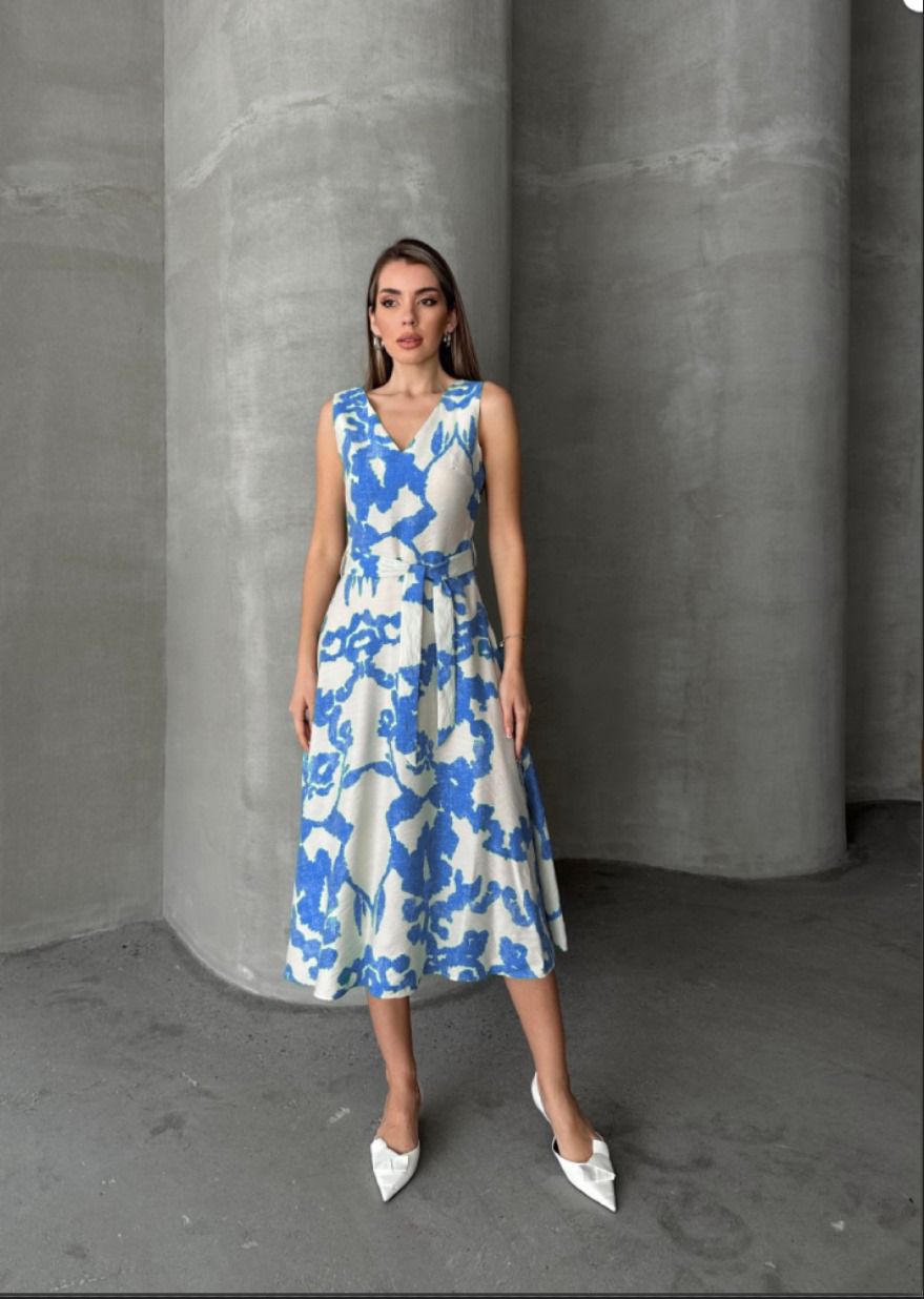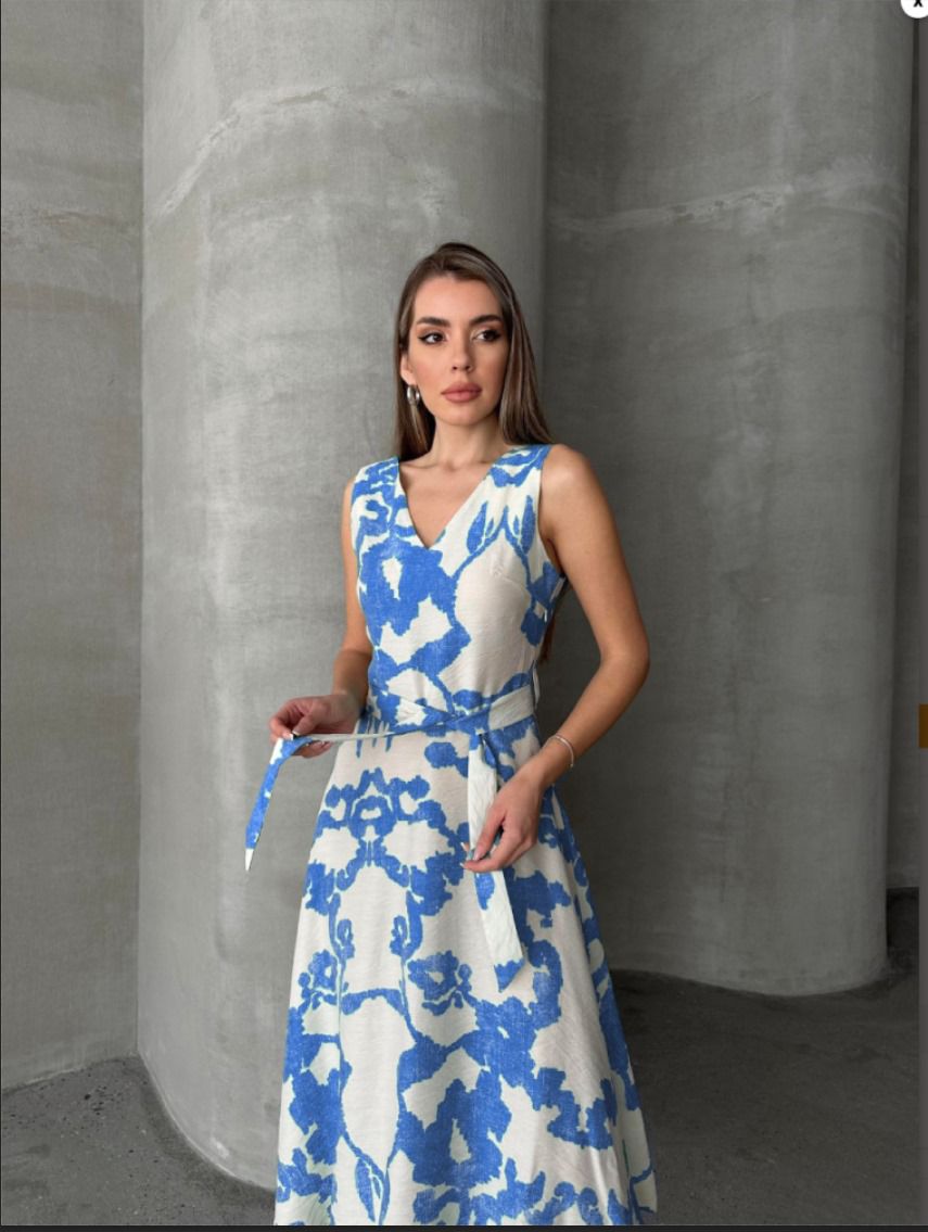 💙 Çiçek Desenli Kuşaklı Elbise 💙