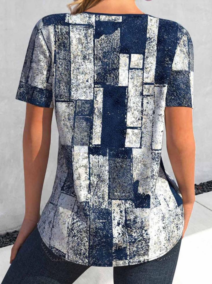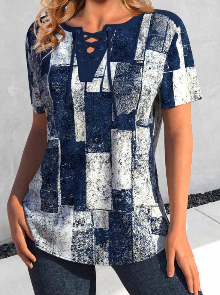 Kadın kısa kollu yakası bağcıklı kuş gözü detay parça desenli süprem bluz