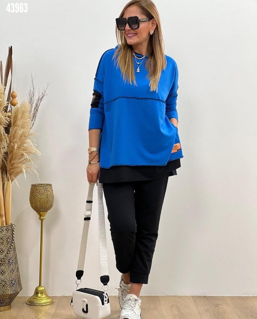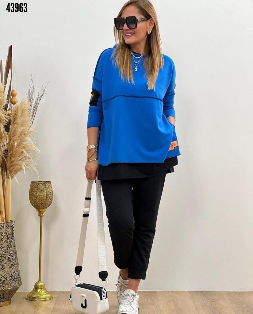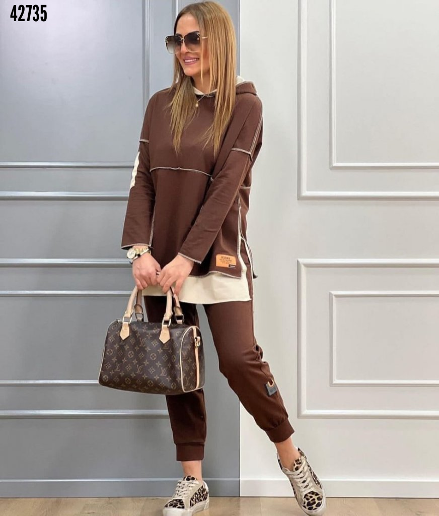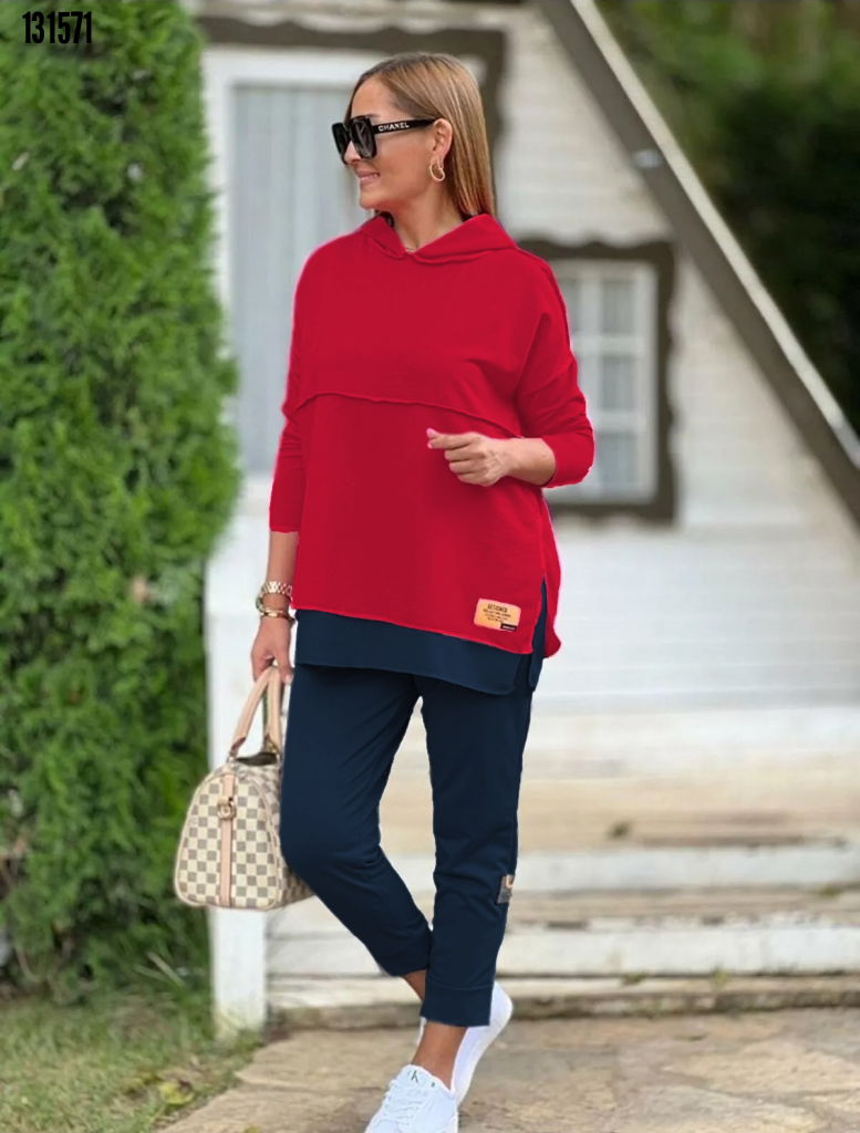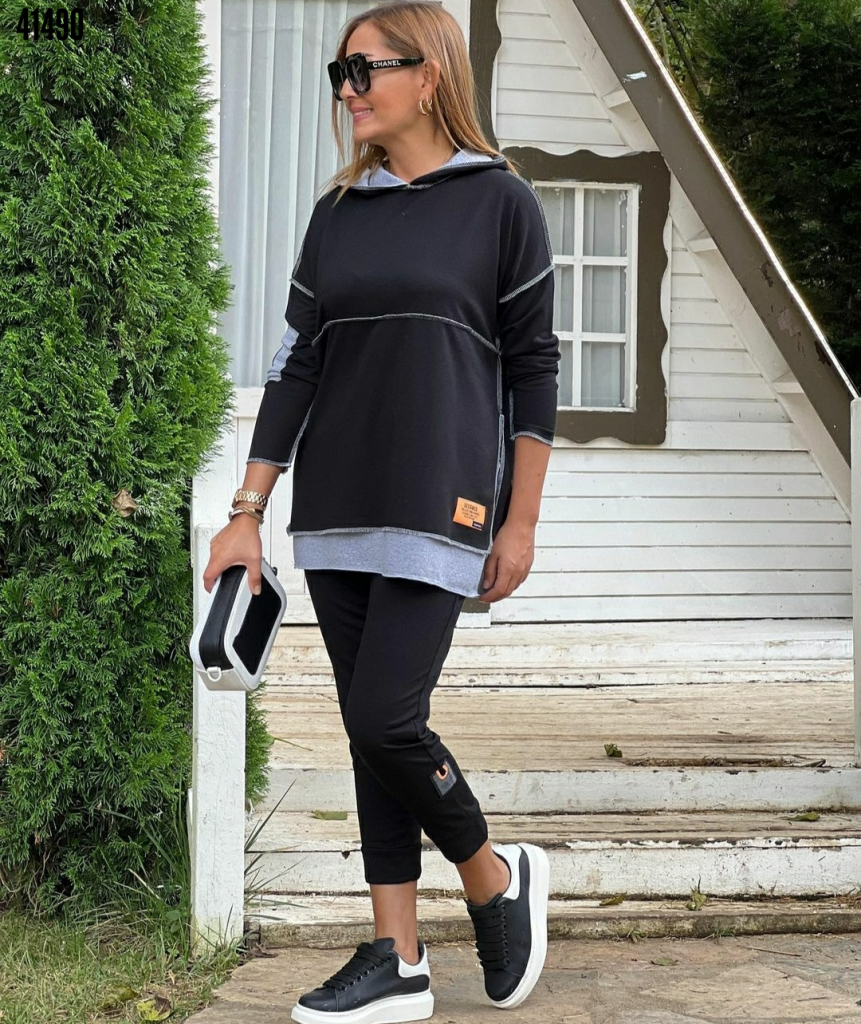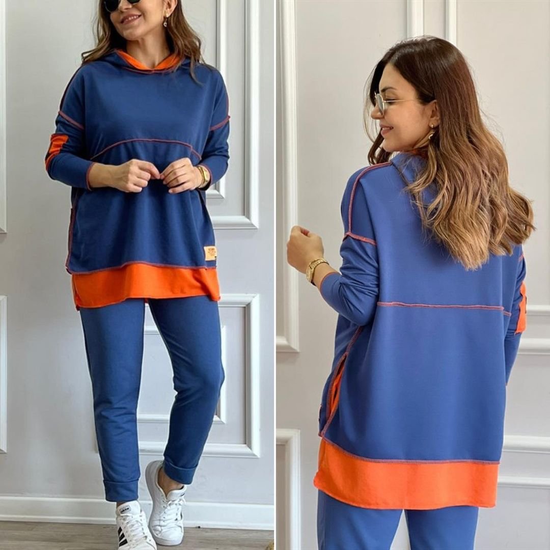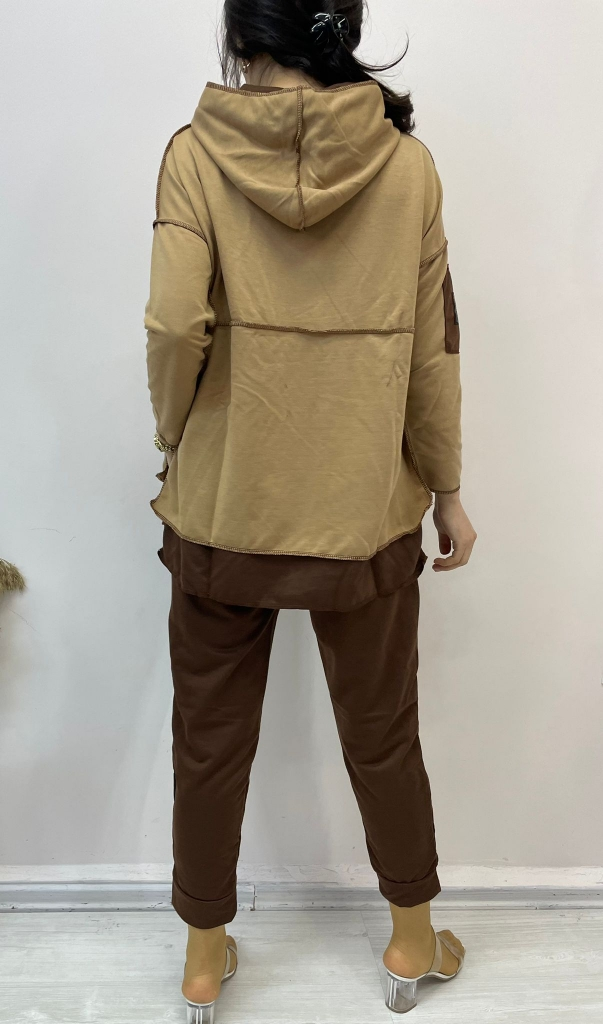 Kadın Kapşonlu Etek Ucu Detay Arma Ters Dikiş Görünümlü İkili Takım