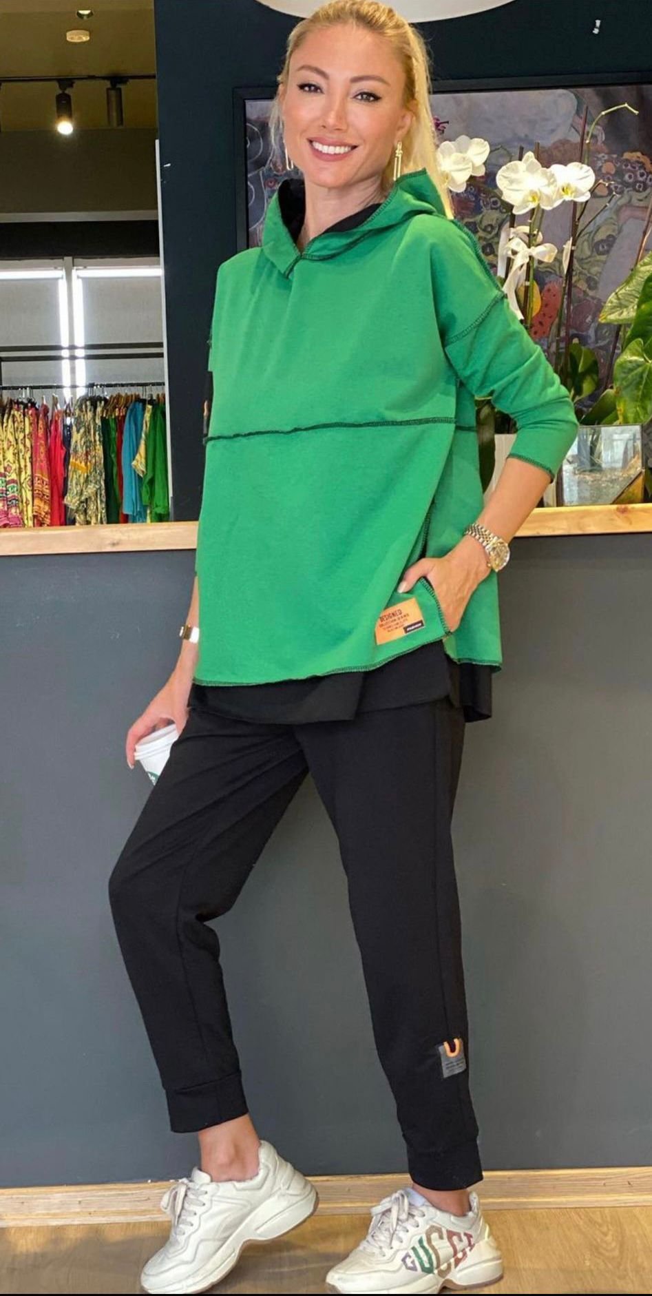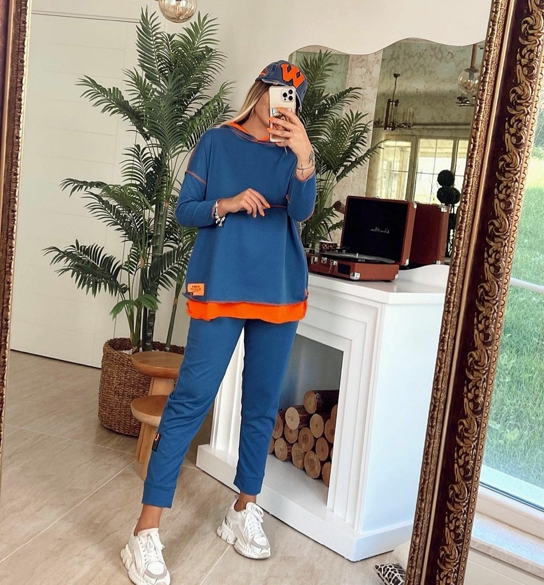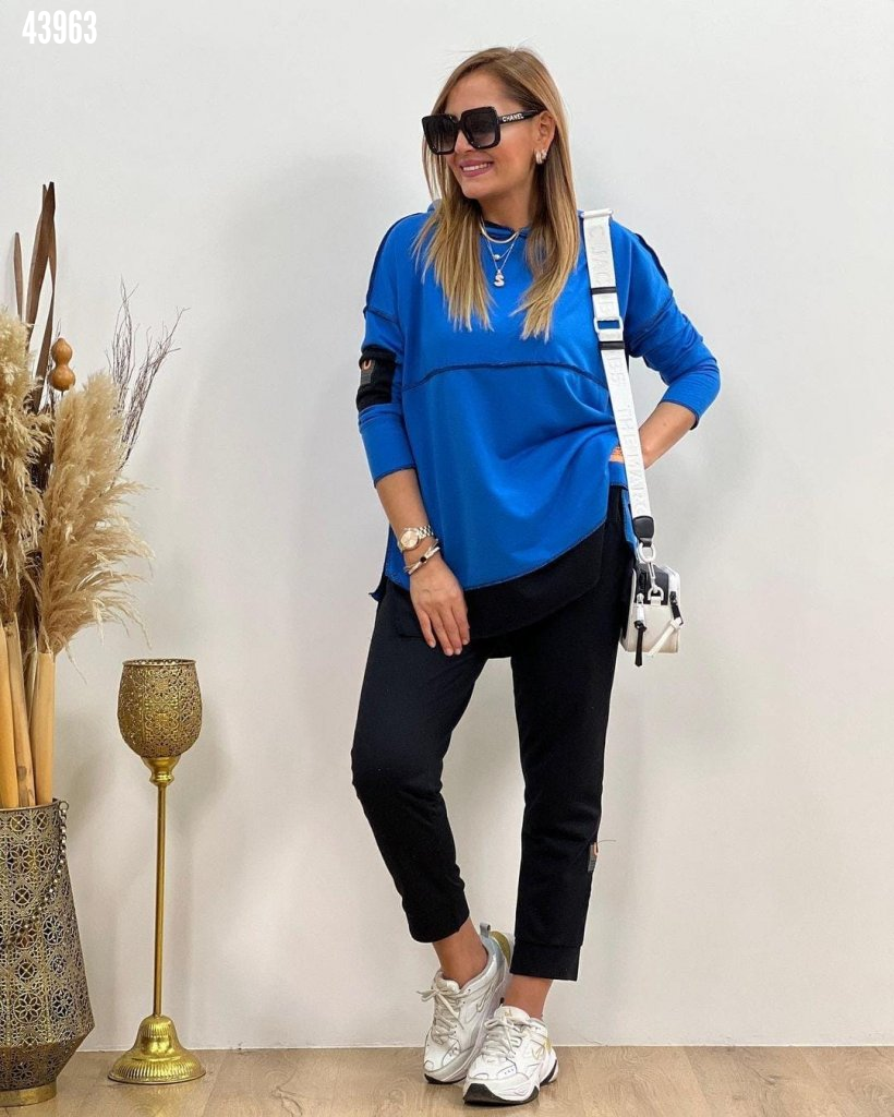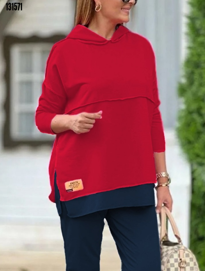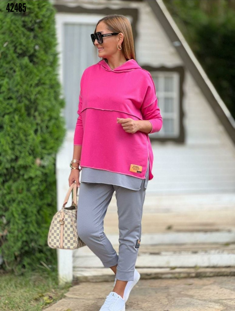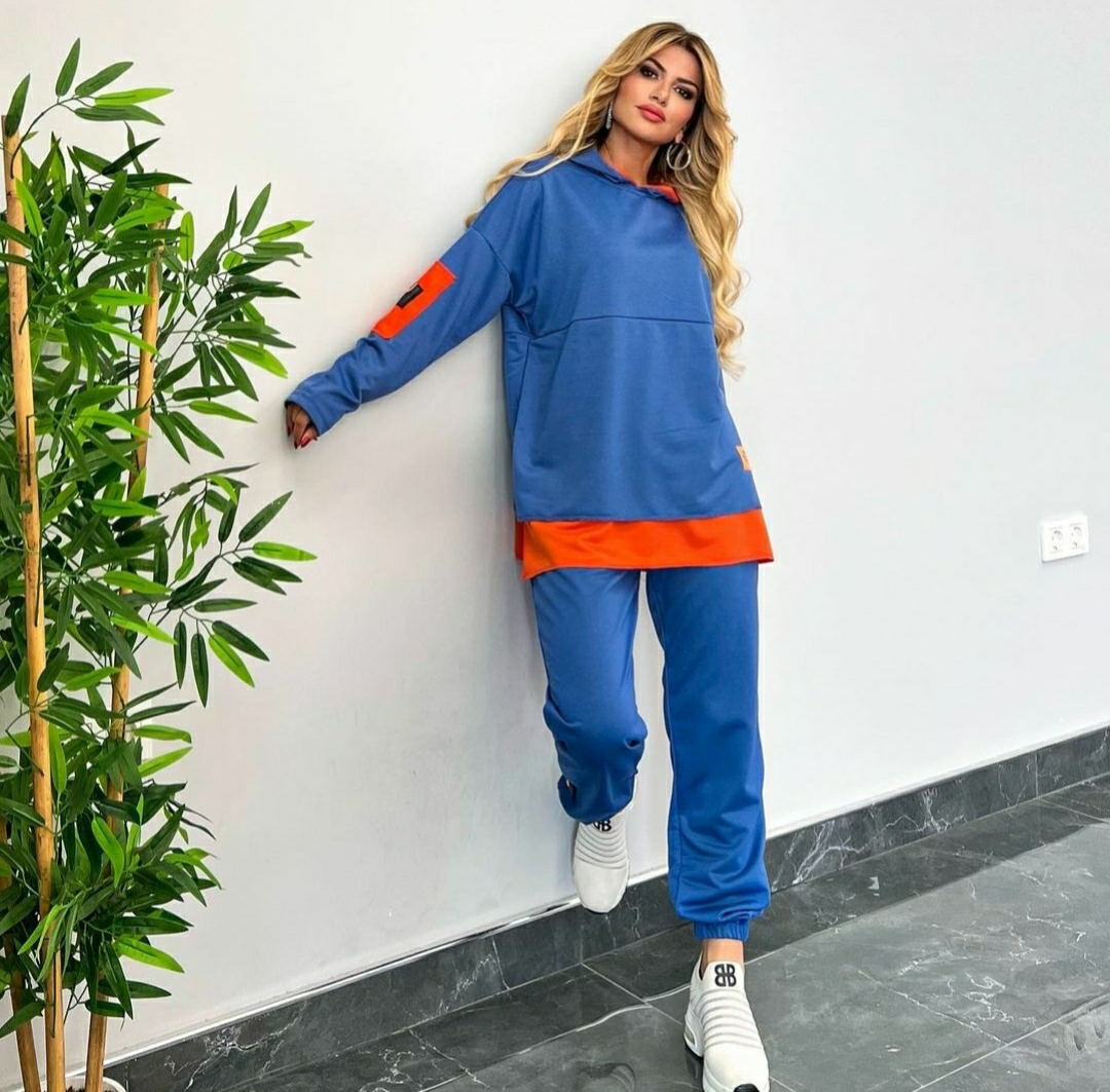 Kadın Kapşonlu Etek Ucu Detay Arma Ters Dikiş Görünümlü İkili Takım