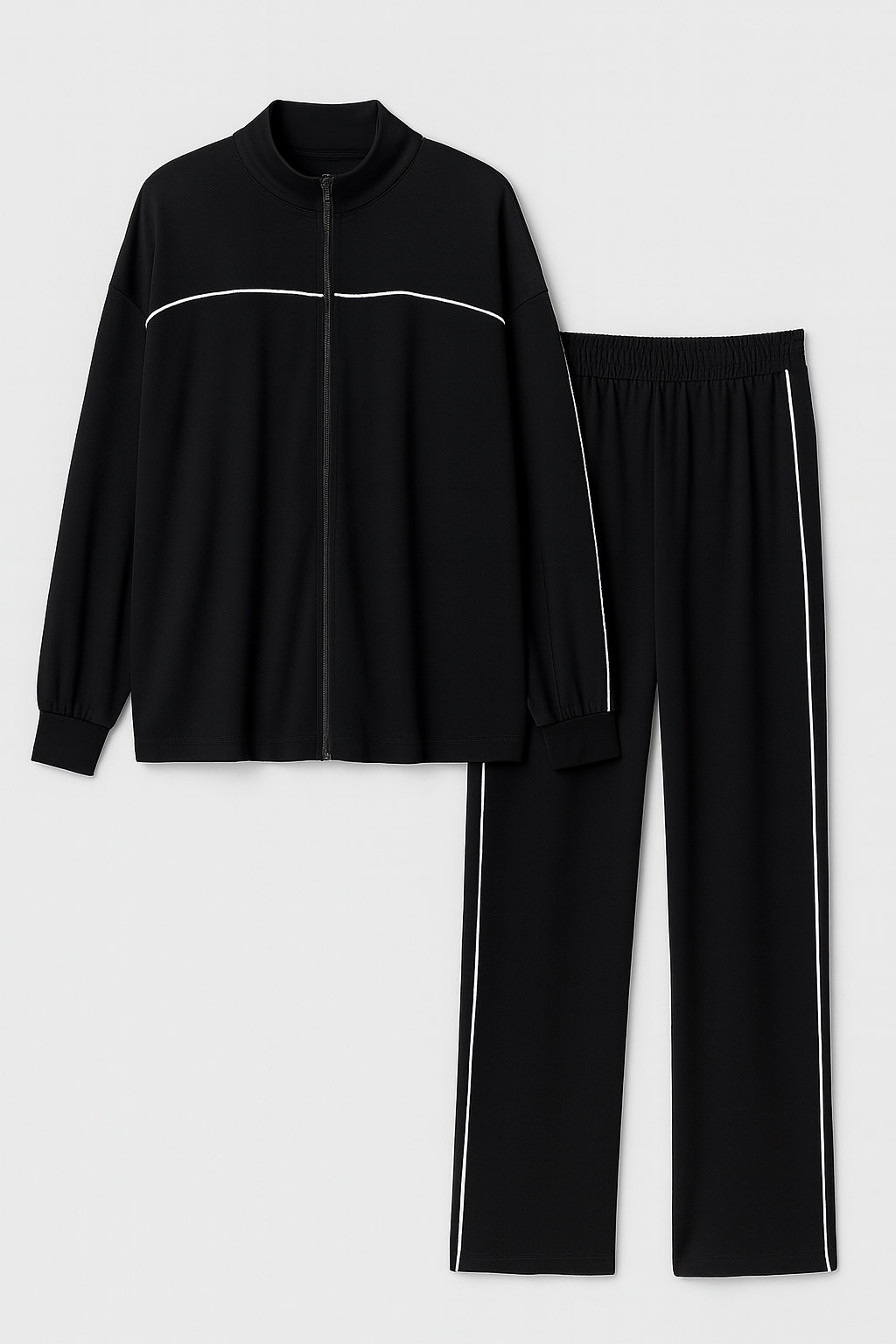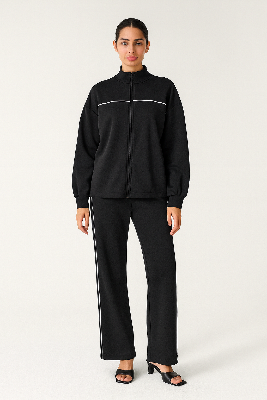 🎨 Detay: Siyah biyeli tasarım, fermuarlı üst, lastikli bel.